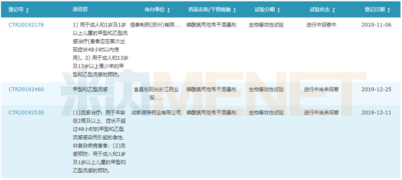 來(lái)源:米內(nèi)網(wǎng)中國(guó)藥品臨床試驗(yàn)公示庫(kù) 國(guó)內(nèi)藥企方面也在追趕進(jìn)度,米內(nèi)網(wǎng)中國(guó)藥品臨床試驗(yàn)公示庫(kù)數(shù)據(jù)顯示,截至2020年3月2日最新數(shù)據(jù),信泰制藥(蘇州)、宜昌東陽(yáng)光藥業(yè)、成都倍 特藥業(yè)已經(jīng)開(kāi)展了磷酸奧司他韋干混懸劑的生物等效性試驗(yàn),國(guó)產(chǎn)化的產(chǎn)品預(yù)計(jì)也將逐步進(jìn)入市場(chǎng)。 結(jié)語(yǔ) 近年來(lái),隨著我國(guó)疫苗研發(fā)水平的不斷提高,新品獲批上市的好消息不絕于耳。2月份。除了百克生物的鼻噴凍干流感減毒活疫苗獲批外,北京民海 生物科技的吸附無(wú)細(xì)胞百白破聯(lián)合疫苗也獲批生產(chǎn),該產(chǎn)品注冊(cè)分類(lèi)為預(yù)防用生物制品15類(lèi)新藥,該產(chǎn)品獲得批文的國(guó)內(nèi)企業(yè)增加至7家。預(yù)防總比 治療好,希望在未來(lái),我國(guó)的疫苗市場(chǎng)能有更好的發(fā)展。 來(lái)源:米內(nèi)網(wǎng)數(shù)據(jù)庫(kù)、公司公告 注:審評(píng)數(shù)據(jù)統(tǒng)計(jì)截至2020年3月4日