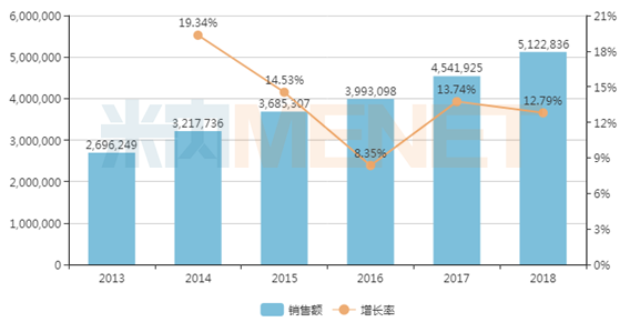 中國是全球糖尿病患者人數最多的國家,近年來隨著糖尿病患者增多,糖尿病治療藥物的使用需求也顯著提高。米內網數據顯示,2018年中國公立醫療機構終端糖尿病用藥銷售額為512.28億元,同比增