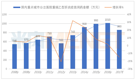 乙型肝炎疫苗市場升溫 據中華醫學會發布的2015年版《慢性乙型肝炎防治指南》指出,世界上約1/3的人口曾感染過乙肝病毒,其中2.4億人為慢性乙肝病毒(HBV)感染者;每年有65萬死于HBV感染導致的各種肝病。我國有慢性乙肝病毒感染者9300萬人,其中慢性乙肝患者(CHB)2000萬人。因此,每年的治療支出高達300億~500億元。在全球大力推廣接種乙肝疫苗后,新生兒人群中的接種有效率提高,在數年后有望改變HBV攜帶者的狀況。 據世界衛生織數據顯示,未感染乙型肝炎病毒者,按規程注射乙肝疫苗后,95%以上可以獲得HBV的終身免疫能力。從理論上講,乙肝疫苗是一個有潛力的品種。尤其是乙肝疫苗被國家正式納入計劃免疫后,帶動了國內乙肝疫苗產業的發展。