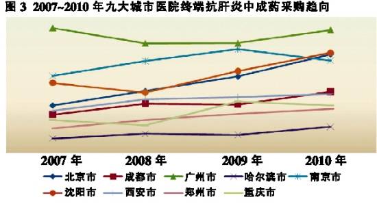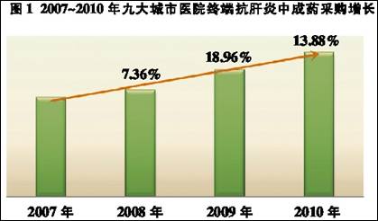 中國是全球感染乙肝病毒人數最多的國家之一,全球3.5億~4億慢性乙肝病毒攜帶者中有超過1/3在中國,其中約有2000萬~3000萬人為慢性乙肝患者。目前,中國每年約有50萬人死于慢性乙型肝炎導致的肝臟損害和肝癌。 根據SFDA南方醫藥經濟研究所廣州標點醫藥信息有限公司“中國中成藥與西藥醫院用藥監測分析系統”(下稱HDM系統)數據顯示,在北京、成都、廣州、哈爾濱、南京、沈陽、西安、鄭州、重慶九大城市(下稱九大城市)中,醫院終端抗肝炎中成藥市場規模逐年擴大。 采購規模遞增 HDM系統顯示,2007~2010年,九大城市醫院終端抗肝炎中成藥采購規模一直保持增長趨勢,2008年增長率為7.36%,2009年為18.96%,2010年為13.88%,年均增長率為13.40%(見圖1)。 根據HDM系統中成藥分類方法,消化系統疾病用藥可分為13個亞類,分別是胃藥(胃炎、潰瘍)、腸道用藥、膽道用藥、肝炎用藥、糖尿病用藥、甲狀腺機能亢進用藥、便秘用藥、止吐藥、健胃消食類藥、止瀉藥、減肥藥、痔瘡藥及消化道疾病其他用藥。從HDM系統2010年醫院中成藥數據來看,肝炎用藥在消化系統疾病用藥中占比為40.16%,胃藥占比為19.50%,痔瘡用藥占比為10.74%(見圖2)。 由于肝炎屬發病率較高的疾病,肝炎用藥一直在消化系統疾病用藥中占有接近過半的份額。肝臟被譽為人體的“化工廠”,每天三餐都需要它來代謝處理。同時,它也是一個“低調”的器官 ,即使肝臟受到損傷的病患也沒有顯著的癥狀,這正是肝病的可怕之處。因此,對于大眾來說,要重視定期的肝臟檢查。 HDM系統顯示,九大城市醫院終端肝炎中成藥采購規模大致逐年增大(見圖3)。九大城市中,廣州的采購金額連續幾年均處于最大值,這和廣東肝炎發病率居全國之首有關,同時與廣州濃厚的中醫中藥氛圍也有關系。