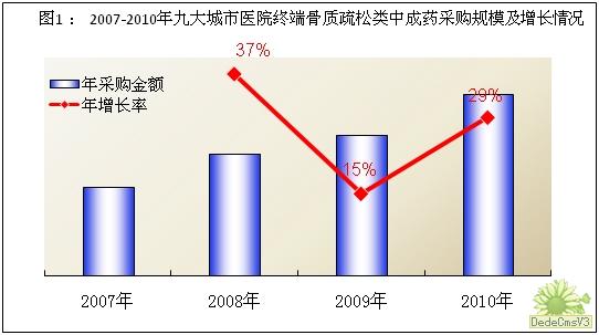 1、九大城市醫(yī)院終端骨質(zhì)疏松類(lèi)用藥中成藥采購(gòu)規(guī)模及增長(zhǎng)情況