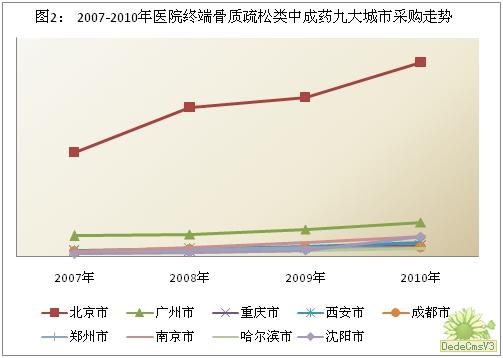 2、醫(yī)院終端骨質(zhì)疏松類(lèi)中成藥九大城市采購(gòu)情況