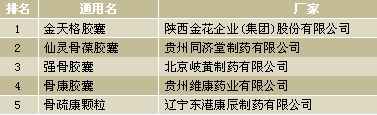 3、骨質(zhì)疏松類(lèi)中成藥主要品牌競(jìng)爭(zhēng)情況
